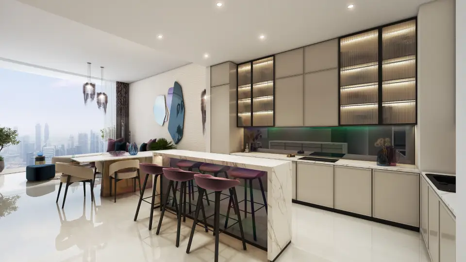 DAMAC Altitude offers luxury apartments with panoramic views of Dubai’s skyline and Burj Khalifa. Interiors reflect contemporary elegance and premium comfort, with high-quality finishes, large windows, and carefully designed living spaces in line with de GRISOGONO’s signature style.