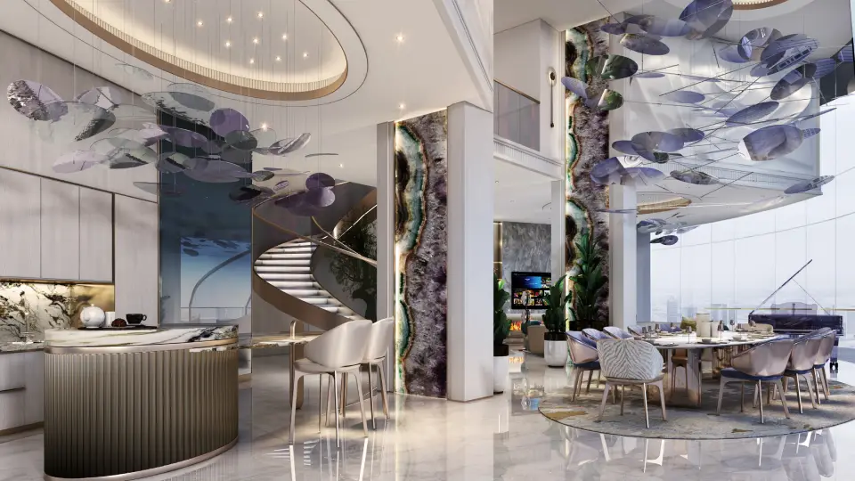 Altitude by DAMAC Hills was developed through a strategic partnership with the global jewelry brand de GRISOGONO, inspired by a rare gemstone called “Thobal.” This collaboration ensures that every aspect of the tower reflects absolute elegance, artistic innovation, and a unique celestial touch, transforming it into an architectural masterpiece that merges art with advanced engineering.