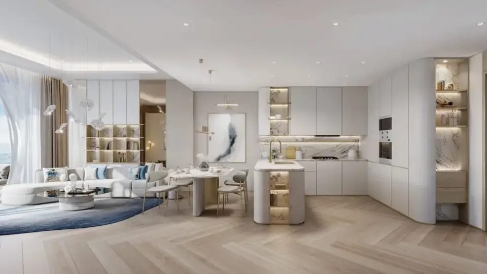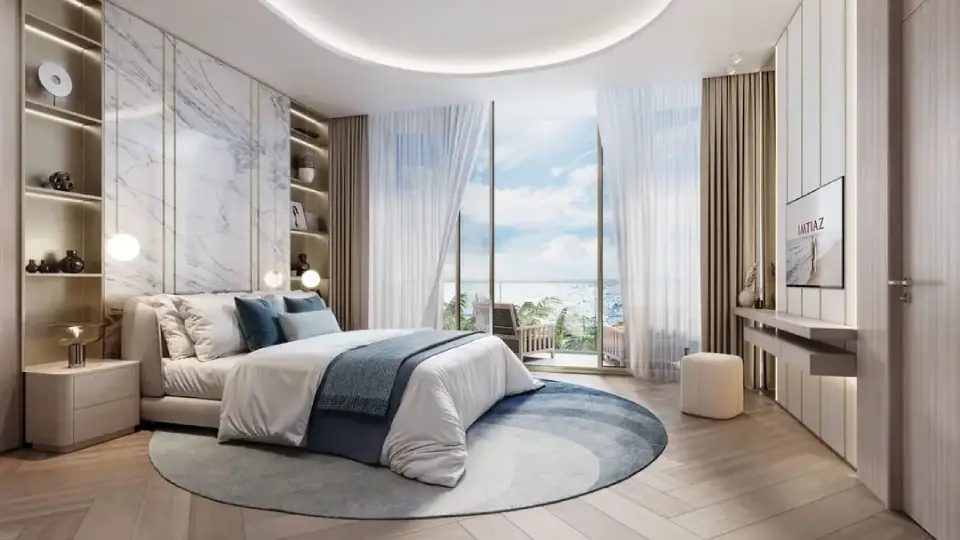 Imtiaz Beach Walk Residence 4 draws inspiration from luxurious resort living. It blends neutral tones with refined golden accents to create a harmonious environment that promotes relaxation and peace of mind.