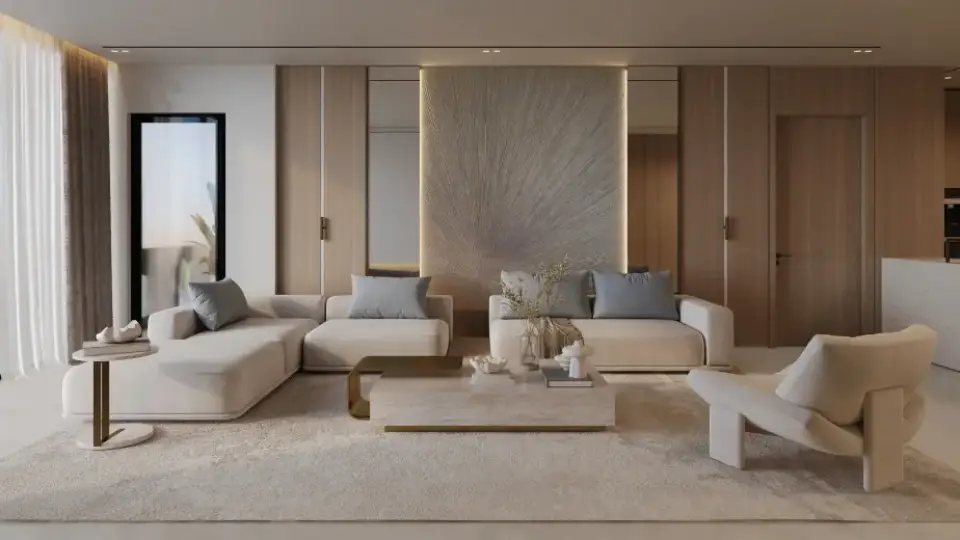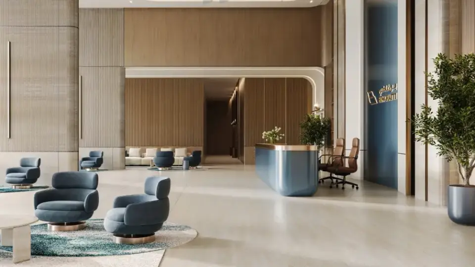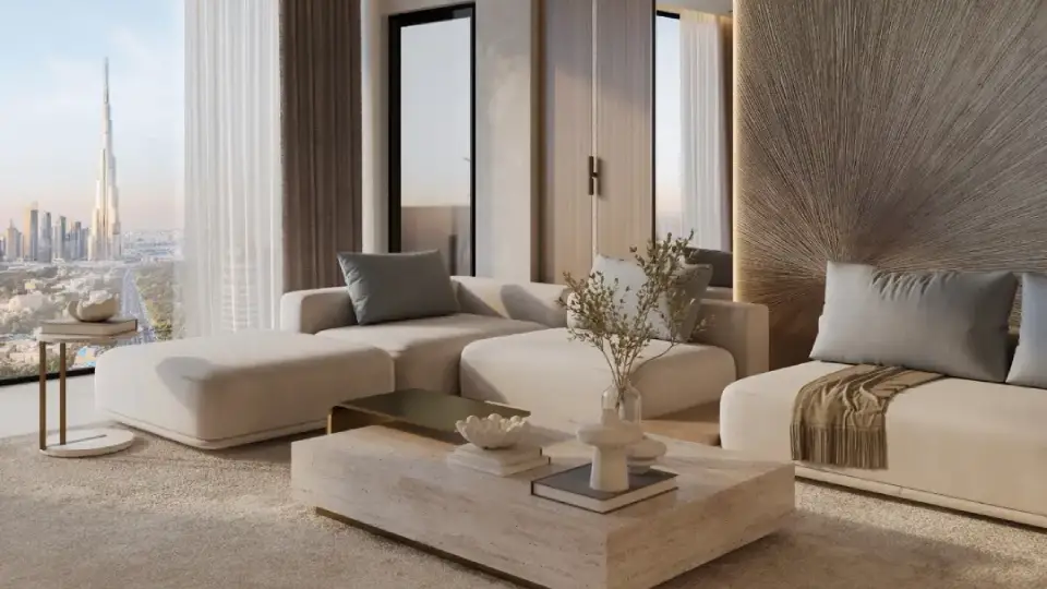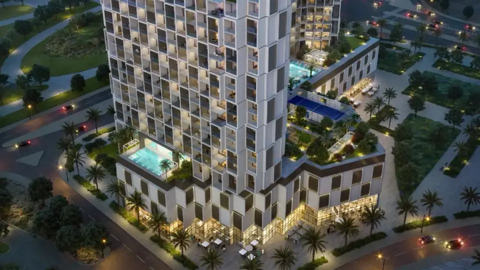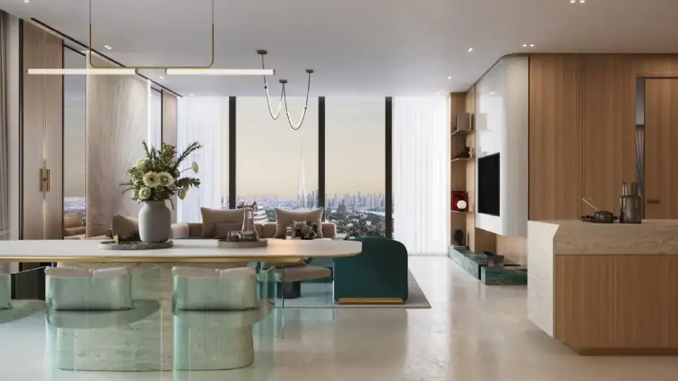 The development includes a variety of units, such as studios, one-bedroom, two-bedroom, and three-bedroom apartments, alongside commercial spaces. Its interiors reflect a modern, sophisticated style, using premium materials to ensure a luxurious and comfortable living experience.