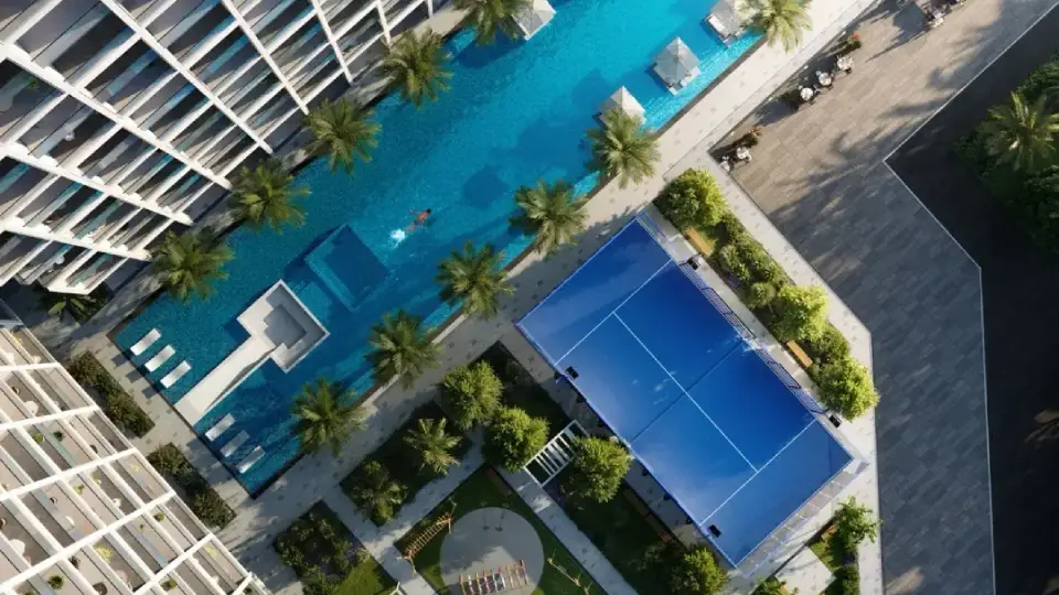 A: Swimming pools, fitness clubs, sports courts, walking paths, gardens, children’s play areas, and a variety of restaurants and cafés.