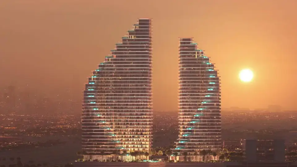 Binghatti Flare is a unique architectural masterpiece located in the heart of Jumeirah Village Triangle (JVT), Dubai, marking a distinctive landmark in the city’s skyline. The project features two opposing towers with a dynamic radial design that reflects light and movement, giving it a striking architectural presence that is both seen and felt. Its wavy, reflective facades showcase a modern, innovative design that redefines contemporary residential towers in Dubai.