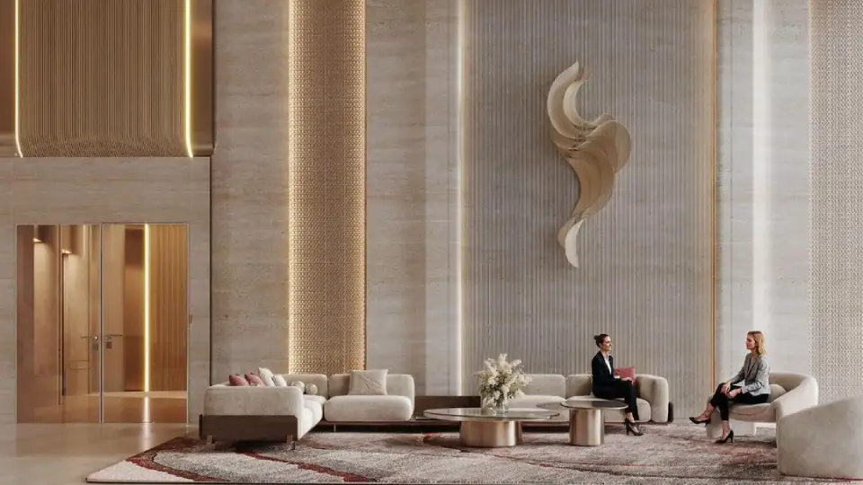 The project features a distinctive architectural design combining modern luxury with practical functionality. The two opposing towers capture light dynamically and highlight movement from every angle, creating a sense of spaciousness and psychological comfort in each residential unit.