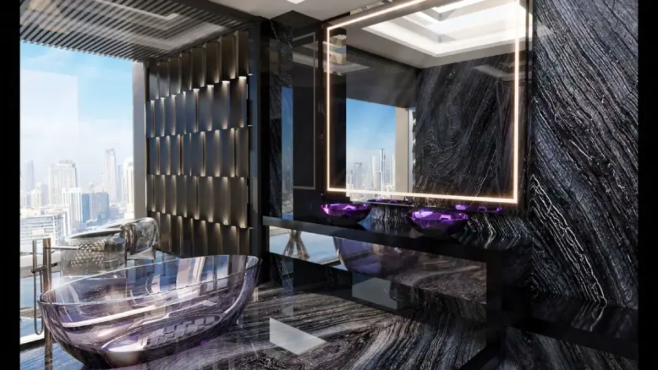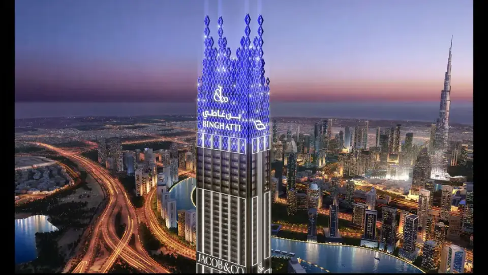 Burj Binghatti Jacob and Co. Residence stands as one of Dubai’s tallest and most luxurious residential towers, situated in the vibrant Business Bay district. The tower features a unique diamond-shaped crown, designed by Jacob & Co., spanning over 112 floors to offer residents an iconic lifestyle that reflects the highest standards of luxury.