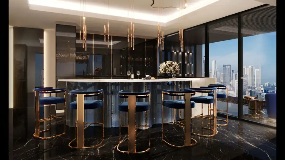 The Fleur de Jardin Sky Villas represent the pinnacle of luxury in the project. Spanning half a floor from levels 83 to 96, these villas offer six opulent bedrooms with 180-degree panoramic views of Dubai. The villas are available in two types: