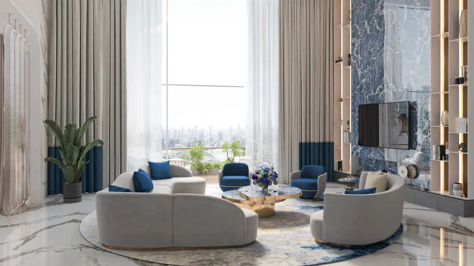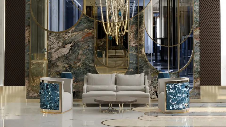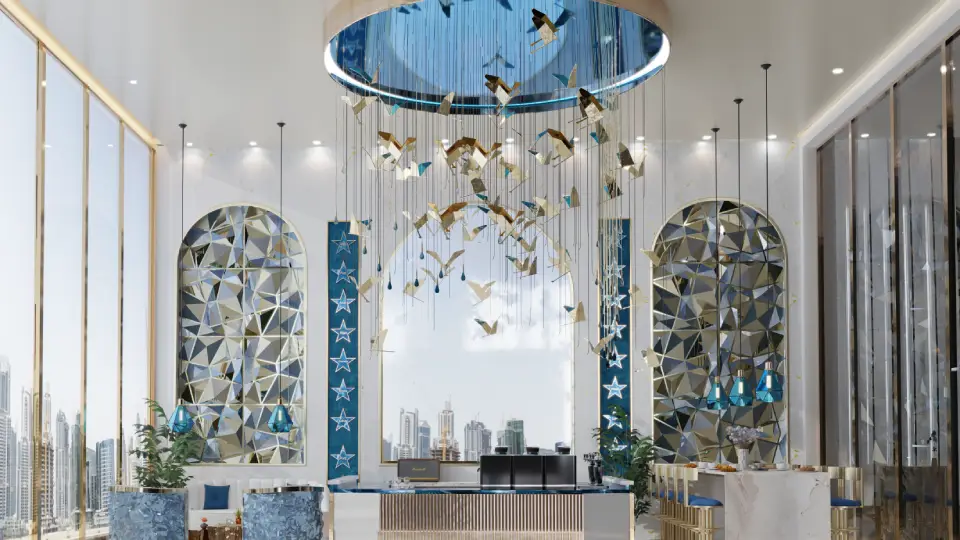 - Luxury Lobby: Radiates a vibrant atmosphere with flowing textures and a harmonious blend of soft and luminous colors, reflecting the signature luxury of DAMAC.