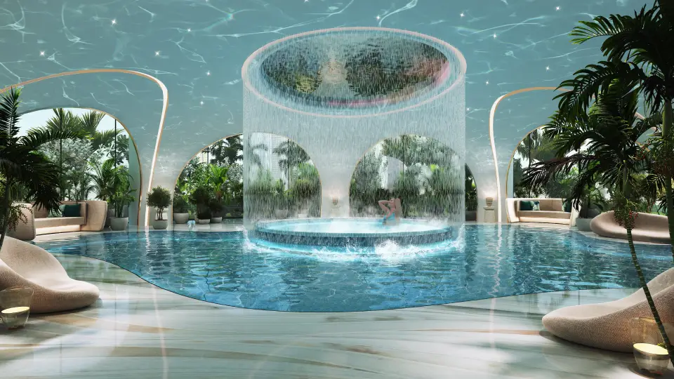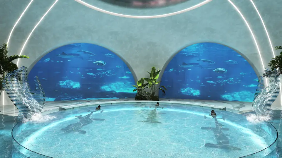 - Relaxation zones, floating beds, a Jacuzzi, and a sauna