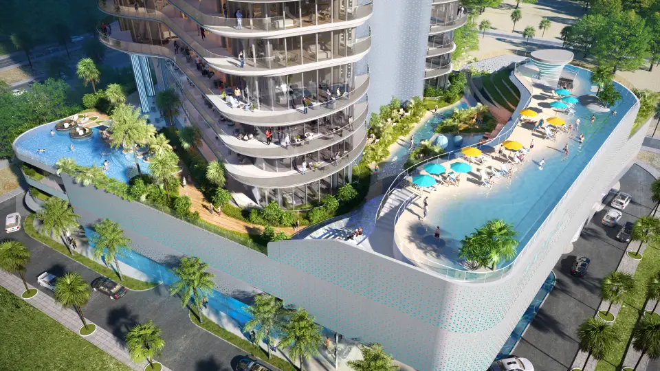 - Comprehensive Amenities: Infinity pools, palm gardens, aqua gym and spa, interactive water art, relaxation lounges, and beachfront cabanas.