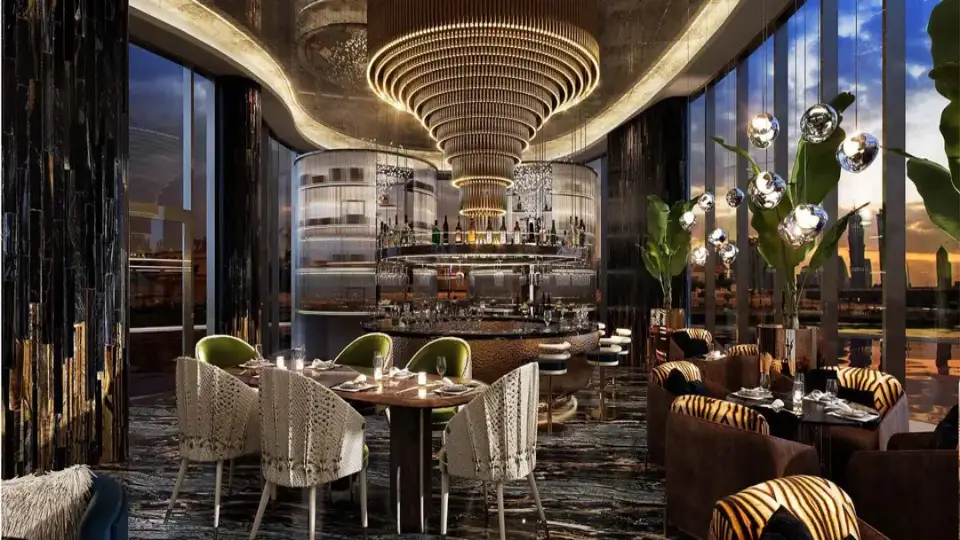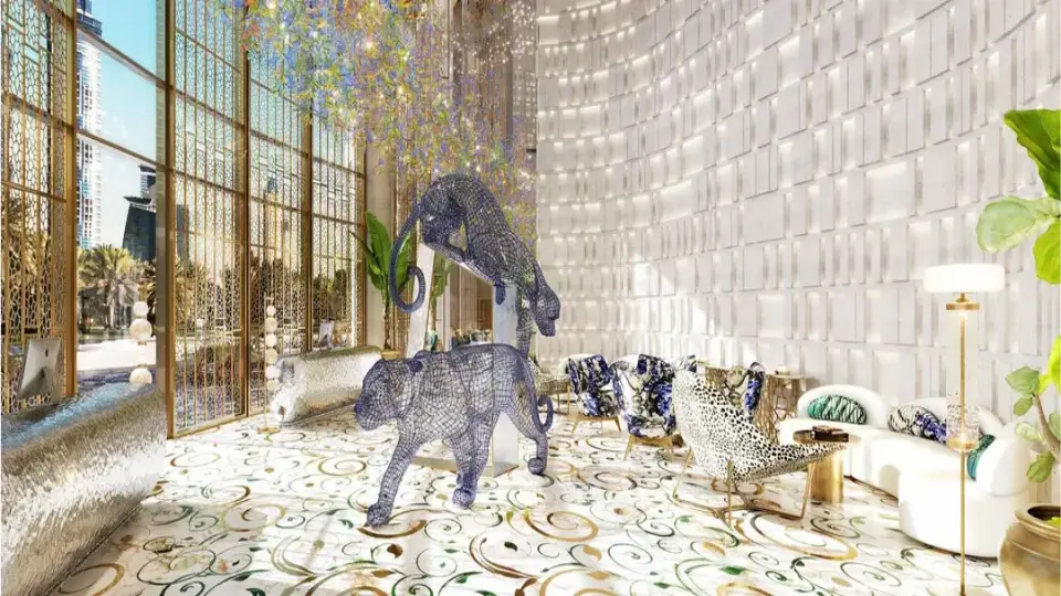 - Three-story luxury lobby with Cavalli design