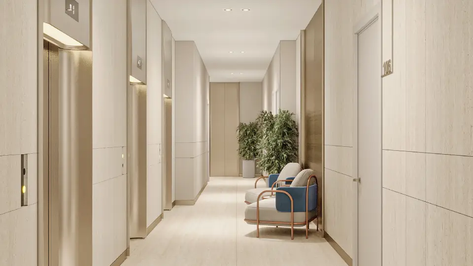 Cove Boulevard uniquely integrates residential and office spaces within the same building, embodying the concept of functional synergy between work and life.