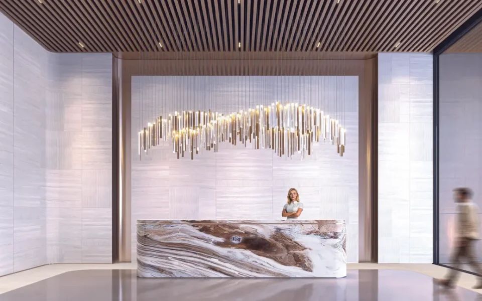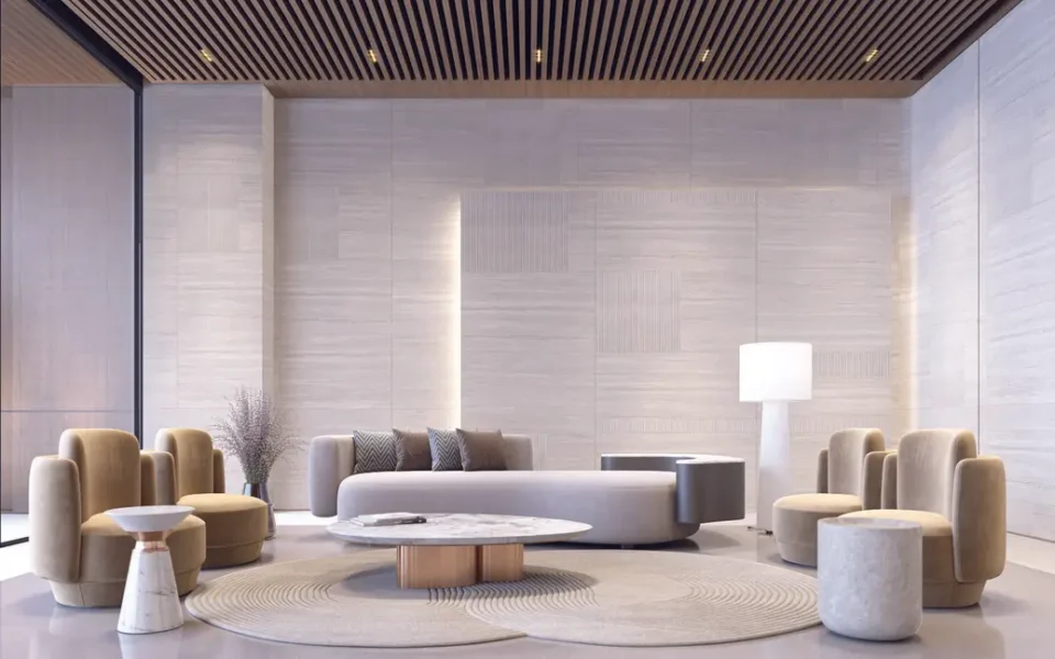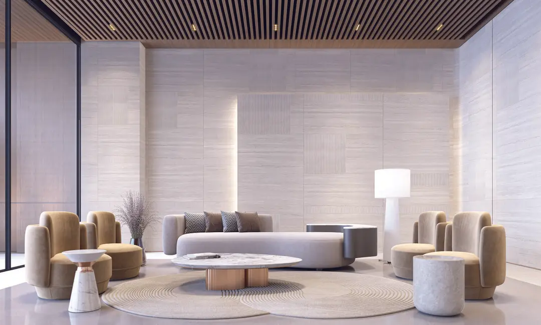 Every detail is carefully considered, including shared spaces like the lobby, reception areas, and the central pool.