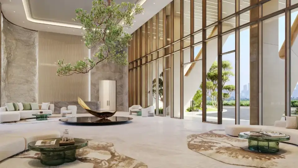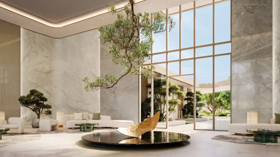 Interiors draw inspiration from Japanese art, blending stone, wood, and metals to create a serene atmosphere. High ceilings, abundant natural light, and flowing spaces make each unit feel vibrant and calm.