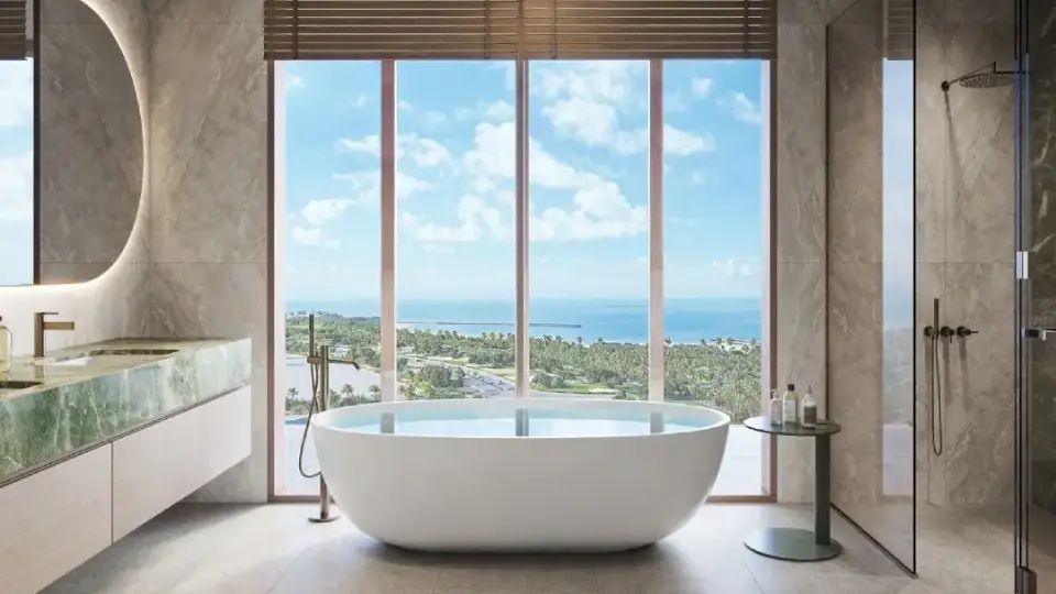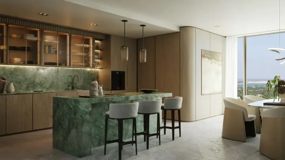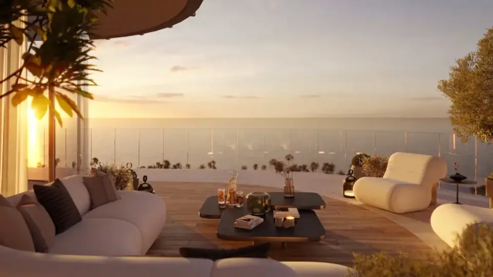 The towers feature terraced designs, expansive green spaces, and unobstructed views of the sea, the Gulf, and the city skyline, offering a lifestyle that blends serenity, nature, and luxury.