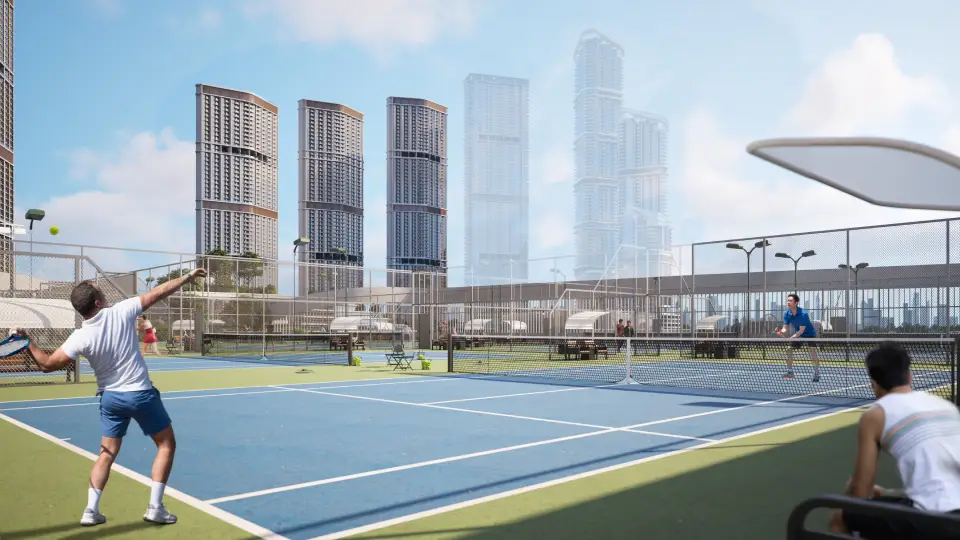 The tower features a distinctive diamond-shaped architectural design that maximizes natural light and panoramic views from every unit. Residents of Sobha 340 Riverside Crescent enjoy serene water views, lush greenery, the golf course, and Dubai’s urban skyline, creating a sense of tranquil luxury that harmonizes with the location.