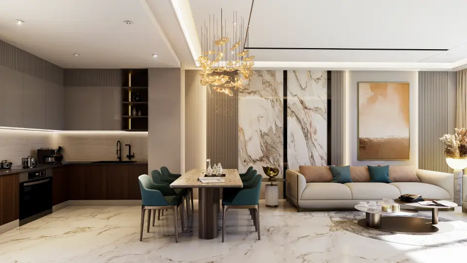 - Living Areas: Open spaces with natural light, luxurious floors, and modern finishes.