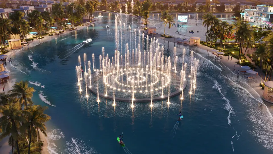 Residents immerse themselves in a comprehensive tropical lifestyle, featuring wellness retreats, adventure zones, vibrant social hubs, floating bars, aqua parks, and serene floating yoga platforms.