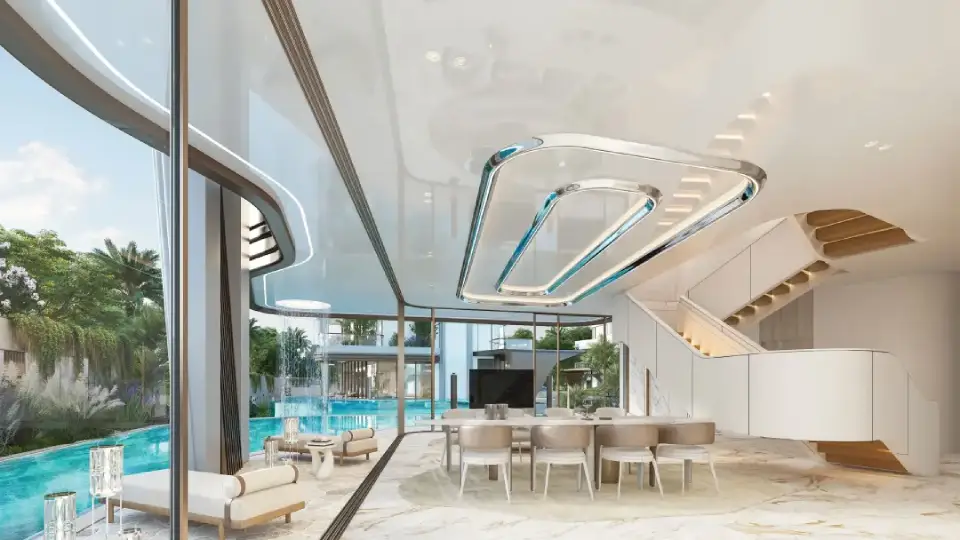 The project employs interactive architecture that responds to light, shadow, and water. Each villa and public space is carefully designed to provide visual and functional balance.