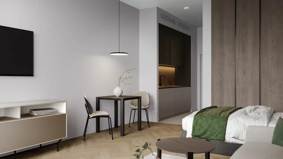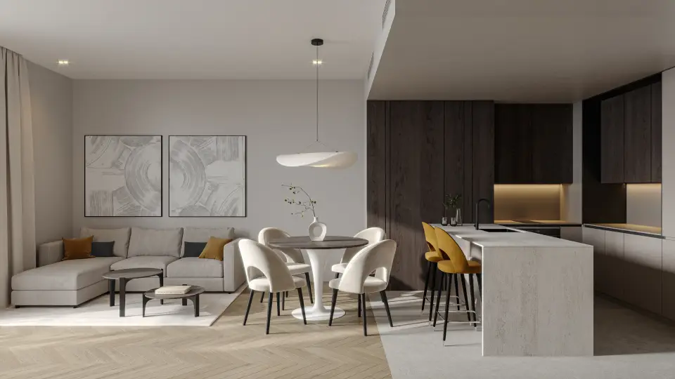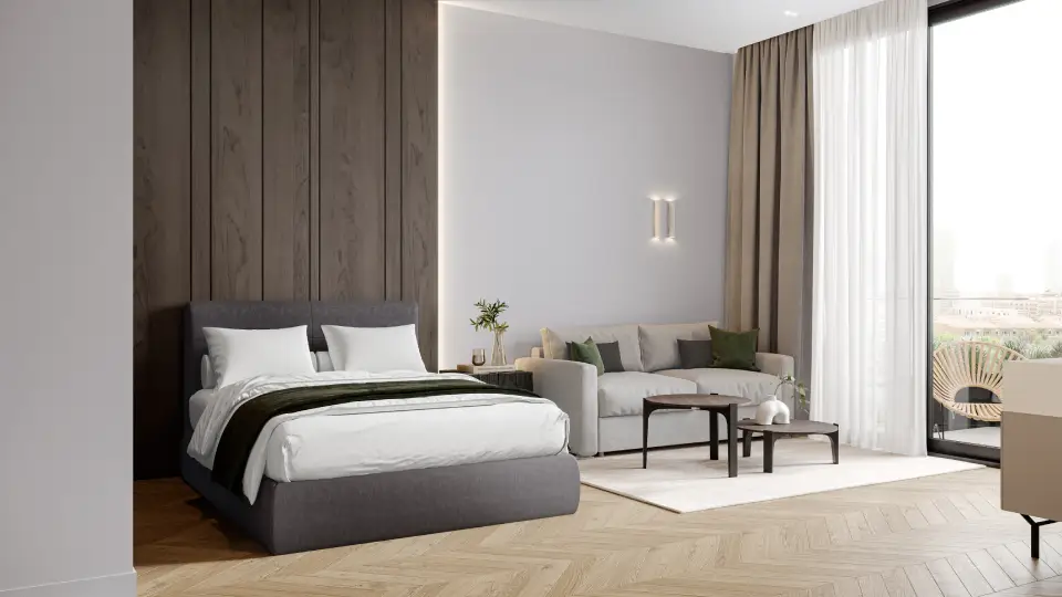 One Wood Residence Two by Object One is a luxurious residential project in Jumeirah Village Circle (JVC), combining modern architectural design with natural elegance. The development features warm wooden accents in both interior and exterior spaces, creating a sense of tranquility and comfort while connecting residents to nature. Every detail has been carefully designed to balance practical comfort with contemporary sophistication, offering a lifestyle that seamlessly blends relaxation, work, and entertainment.