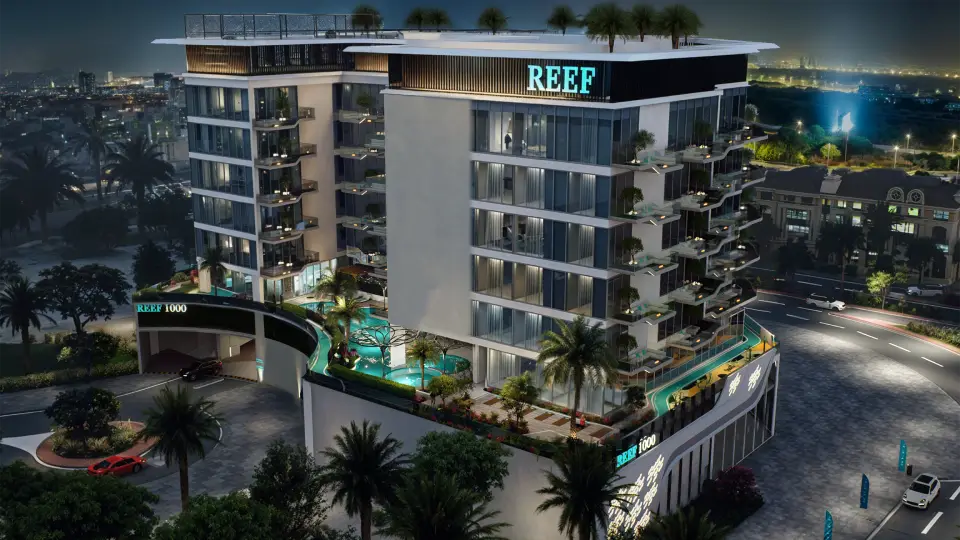 The REEF 1000 project, developed by Reef Luxury Development, is a distinguished residential project in the Dubai Land Residence Complex (DLRC). It combines modern architectural design, full luxury, and harmony with nature.