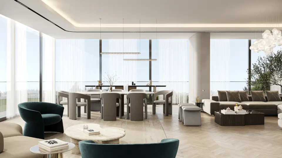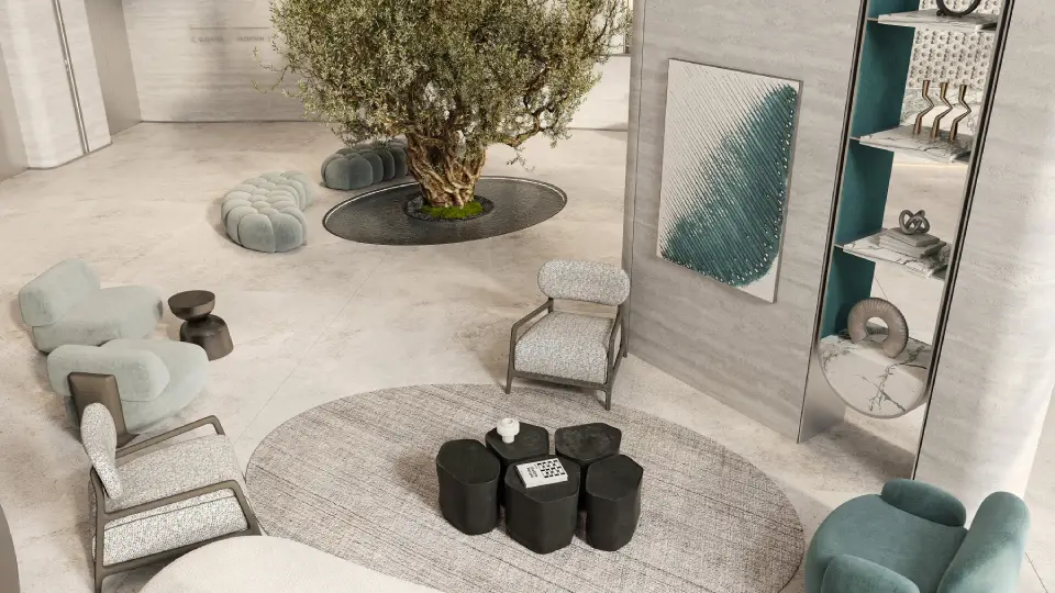 Social spaces: Luxury guest lounges, shared seating areas, co-working spaces.
