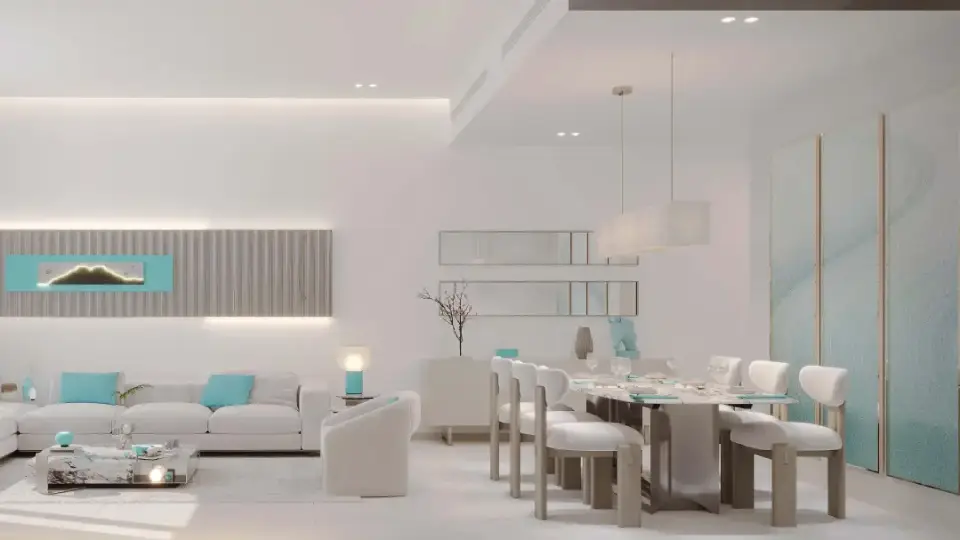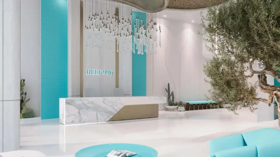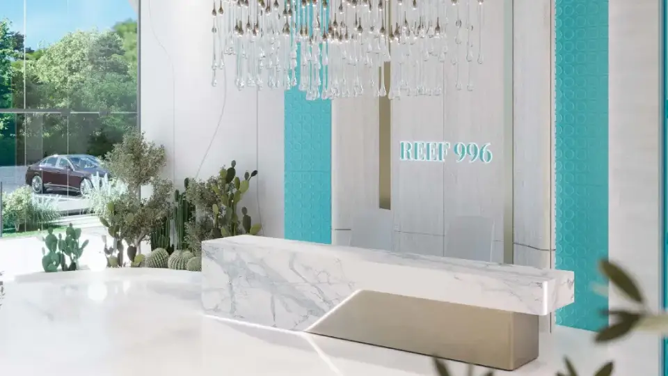 Residential units in the Reef 996 project include studios, one-bedroom, two-bedroom, and three-bedroom apartments, ranging from 400 to 1,932 sq. ft. Each unit is thoughtfully designed to maximize space and natural light, featuring high ceilings, panoramic windows, and elegant design lines that create a calm interior atmosphere. The sunken, cooled balconies provide functional and aesthetic outdoor space, offering a living experience that blends luxury with practicality.