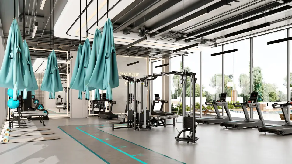 Yes, including gyms, courts, yoga areas, jogging and cycling tracks, and age-specific sports activities.