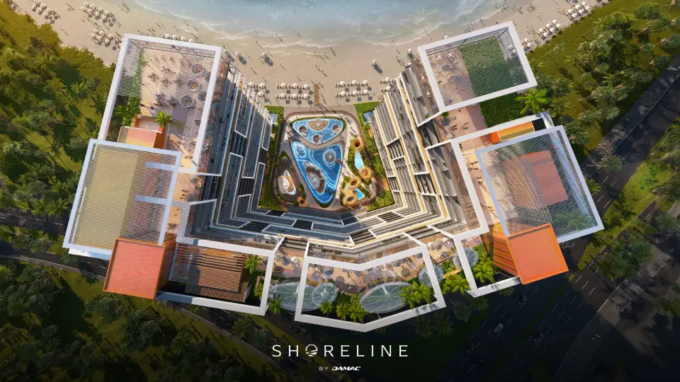 Shoreline by DAMAC is a premium beachfront development under construction on Al Marjan Island in Ras Al Khaimah, offering a blend of modern design and marine-inspired luxury.