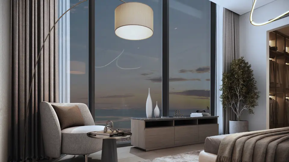 Skyparks by Sobha exemplifies luxurious vertical living by blending modern lifestyle concepts with community and entertainment amenities in a single destination. The tower is divided into five interconnected sub-towers, featuring sleek glass facades and spacious balconies that offer panoramic views of Sheikh Zayed Road, Palm Jumeirah, and the Arabian Gulf. Each unit maximizes natural light and airflow, featuring expansive interiors that strike a balance between comfort and luxury.