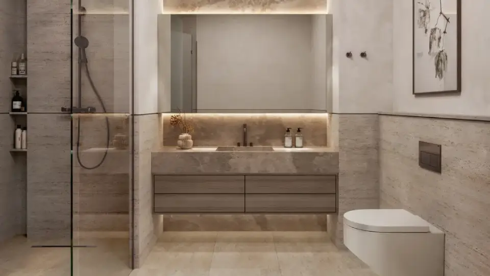 The interiors of Soulever by Beyond reflect refined luxury, featuring soft neutral color palettes, open layouts, and natural stone finishes. The project offers a variety of residential units, including 1- to 3-bedroom apartments, podium chalets, duplexes, and penthouses, all with customized details and private balconies. Kitchens come equipped with sleek cabinetry, stone countertops, and integrated appliances.