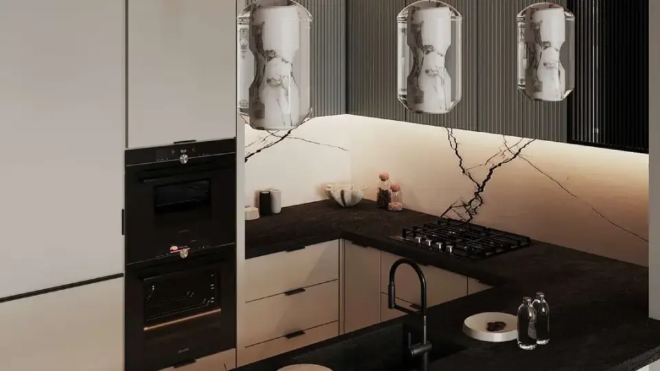 Each apartment features meticulously crafted interiors that enhance a sense of openness, with large windows that let in natural light and offer panoramic views of Dubai’s skyline and the JVC community. High-quality materials include Turkish tiles, Spanish Gala sanitary fixtures, Ramon Soler faucets, and modern European cabinetry that balances beauty with functionality.