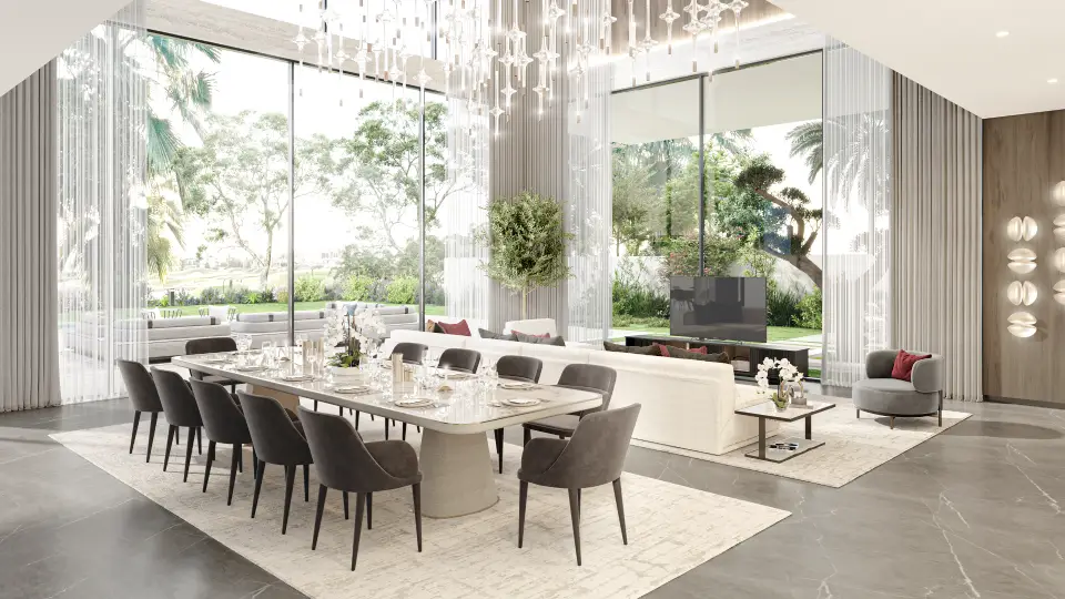 The villas are situated in a secluded part of DAMAC Hills, offering complete privacy with direct access to Trump International Golf Club, landscaped gardens, sports tracks, luxury shops, and fine dining.